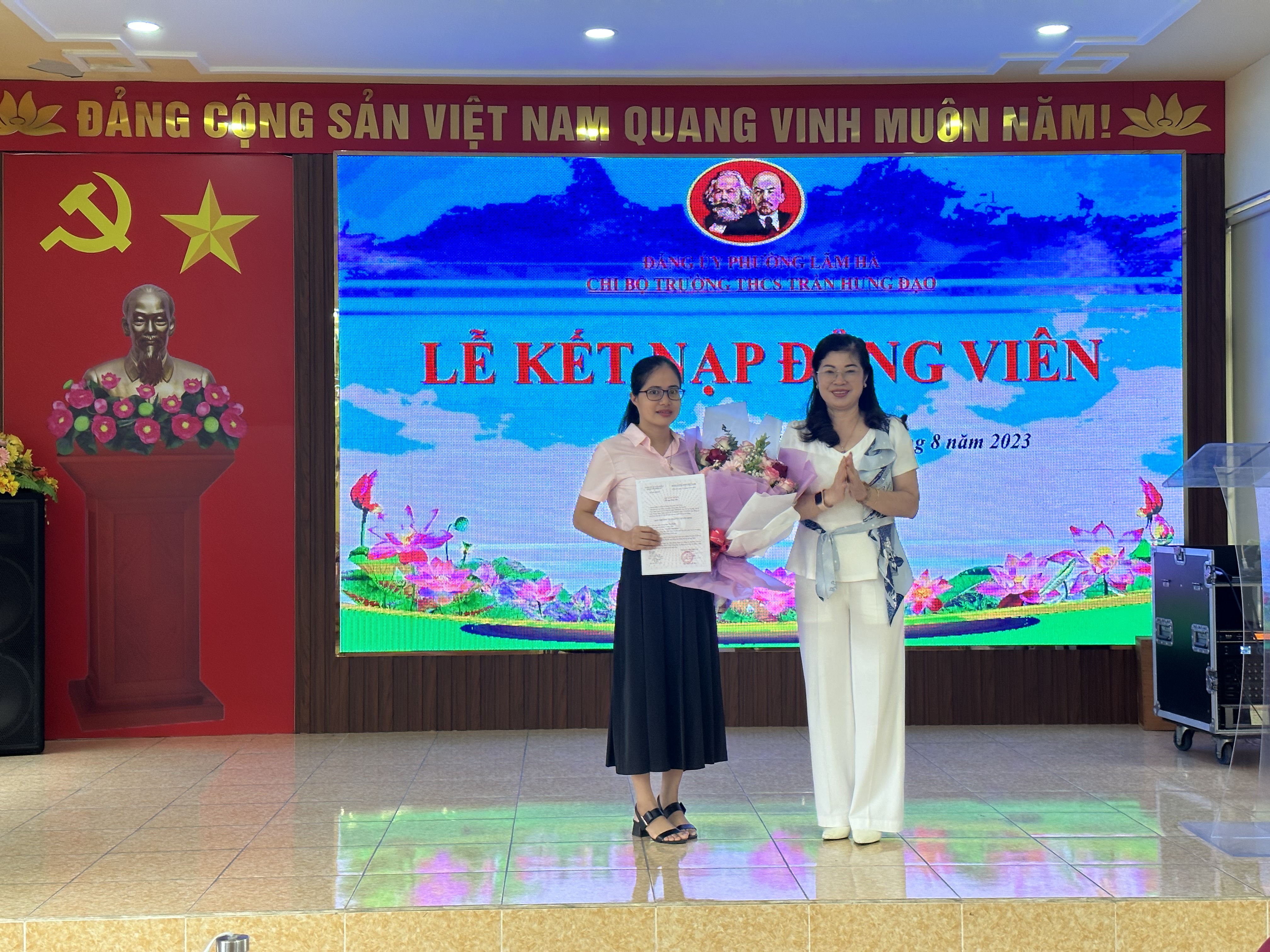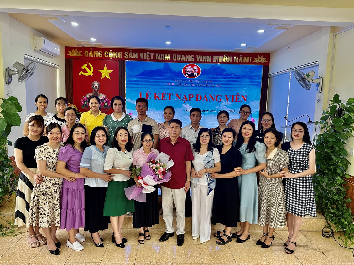 Ngày 3/8/2023, Chi bộ Trường THCS Trần Hưng Đạo long trọng tổ chức Lễ kết nạp quần chúng ưu tú Đào Thị Huyền vào Đảng Cộng sản Việt Nam theo Quyết định số 968- QĐ/QU ngày 25/7/2023 của Ban Thường vụ Quận ủy Kiến An. Đây là nhiệm vụ có ý nghĩa quan trọng trong công tác phát triển đảng viên của Chi bộ, đồng thời là niềm vinh dự, tự hào đối với quần chúng Đào Thị Huyền trong suốt quá trình phấn đấu rèn luyện, tu dưỡng để được đứng trong hàng ngũ của Đảng.