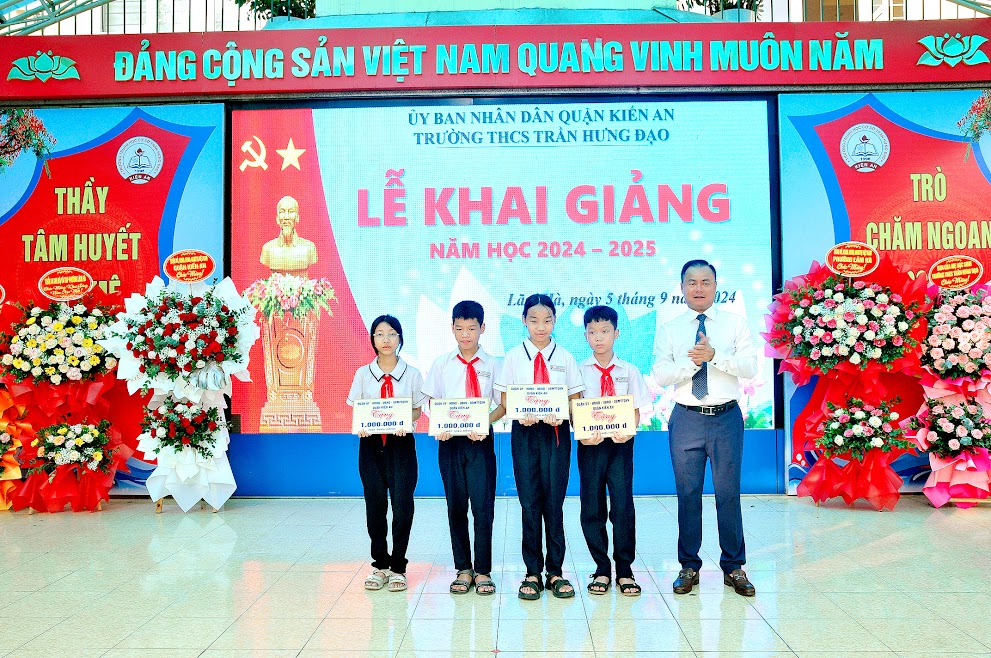 Hoà chung không khí vui tươi, sôi nổi của cả nước, sáng ngày 5/9 trường THCS Trần Hưng Đạo long trọng tổ chức Lễ khai giảng năm học mới 2024- 2025. Nhân dịp khai giảng UBND quận Kiến An cùng nhà trường đã dành tặng nhiều phần quà ý nghĩa và học bổng cho học sinh co hoàn cảnh khó khăn của trường. Đây là những phần quà ý nghĩa nhằm động viên tinh thần các em học sinh vươn lên trong học tập và rèn luyện, phấn đấu trở thành con ngoan trò giỏi, cháu ngoan Bác Hồ.