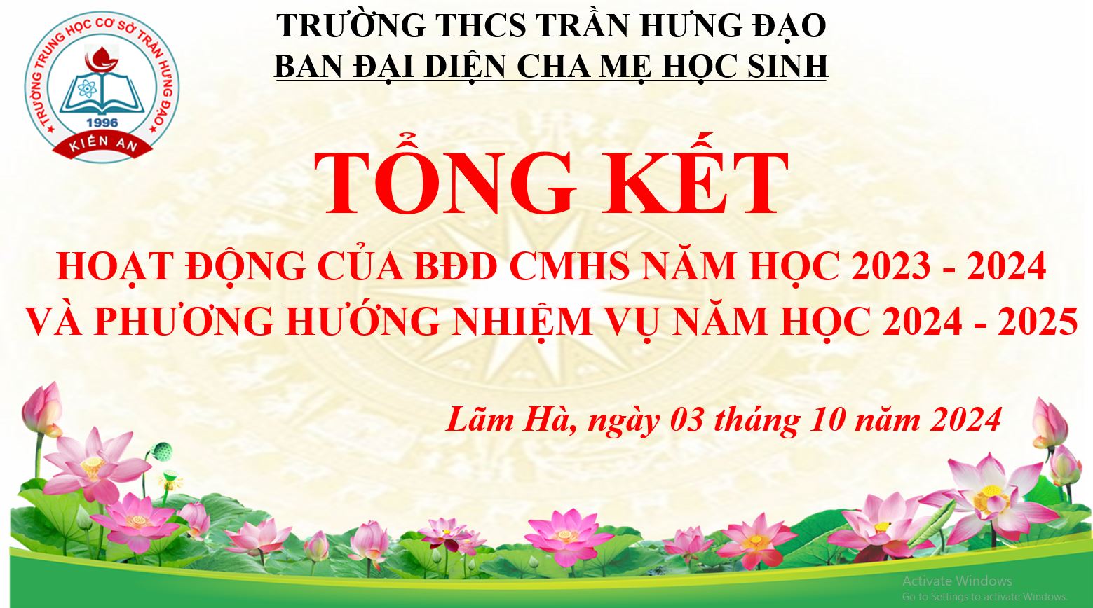 Tổng kết hoạt động của Ban Đại diện CMHS trường THCS Trần Hưng Đạo năm học 2023 - 2024 và Phương hướng nhiệm vụ năm học 2024 - 2025