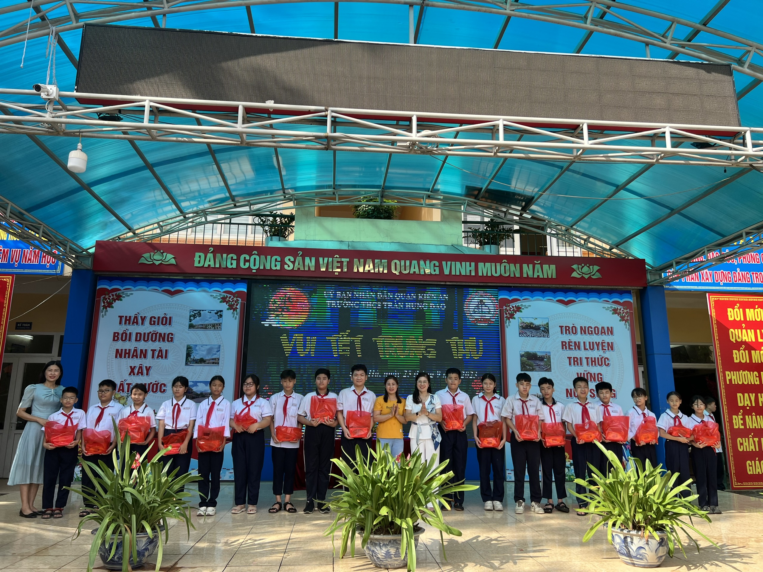 Thực hiện công văn 254/PGD&ĐT ngày 22/8/2023 của Phòng GD&ĐT Kiến An về việc tổ chức hoạt động Tết trung thu cho học sinh năm 2023. Cùng với mong muốn có một Lễ hội trung thu thật vui vẻ, đầy ý nghĩa cho các em học sinh nhân dịp đặc biệt này, sáng ngày 25/9/2023 Trường THCS Trần Hưng Đạo đã tổ chức ngày hội "Vui Tết Trung Thu năm 2023". Trong ngày hội nhà trường đã tổ chức trao tặng 18 suất quà cho các em học sinh có hoàn cảnh khó khăn đang theo học tại trường. Bên cạnh đó, các lớp còn thi đua bày mâm cỗ trung thu, múa lân, biểu diễn văn nghệ... Ngày hội đã diễn ra sôi nổi và ghi dấu ấn trong các em học sinh.