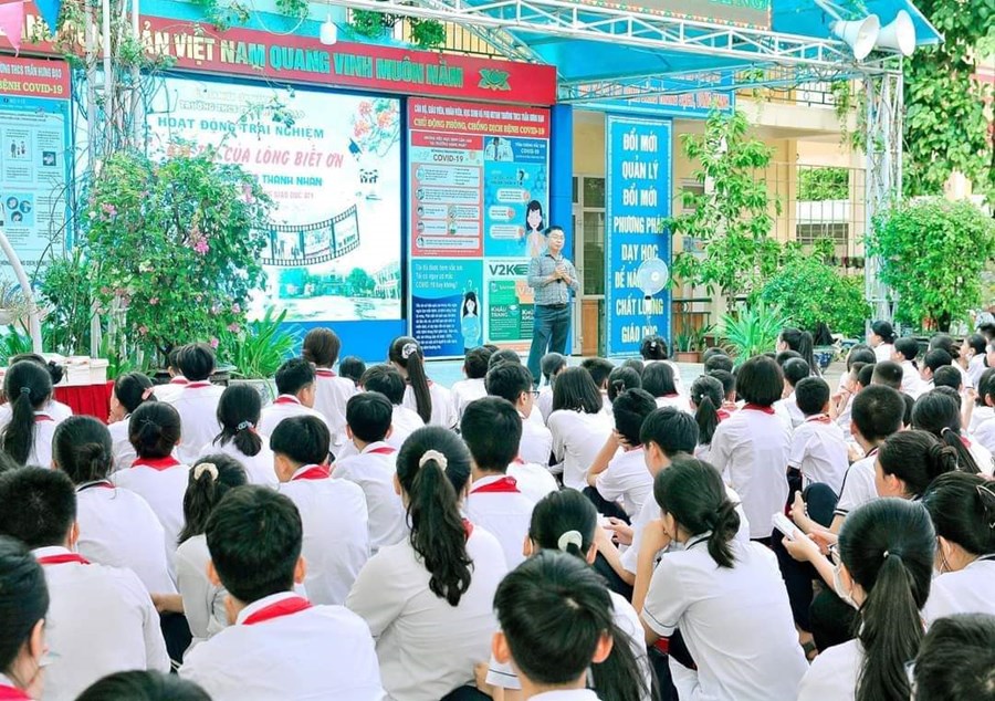 Thực hiện kế hoạch nhiệm vụ năm học 2022-2023, chiều ngày 23/9/2023 Trường THCS Trần Hưng Đạo tổ chức Chuyên đề: Hoạt động trải nghiệm với chủ đề "Giá trị của lòng biết ơn".