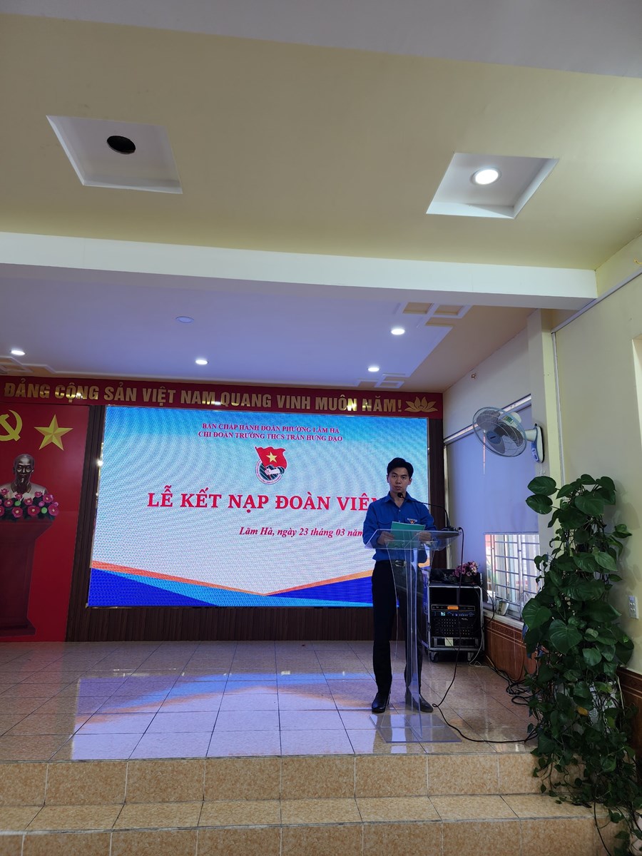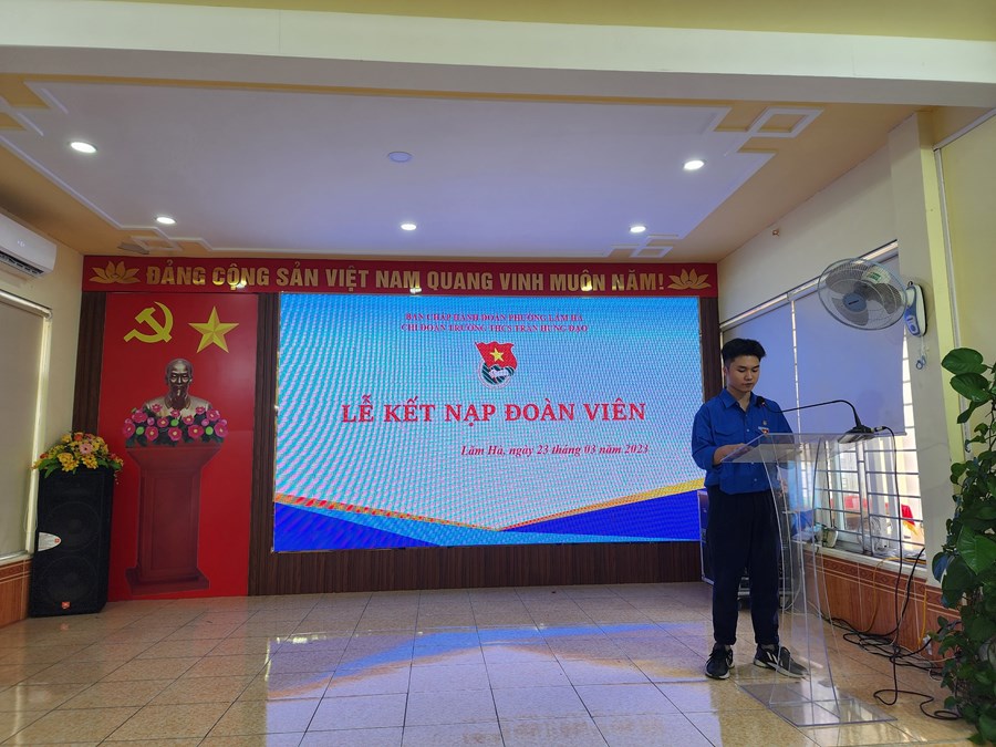 Căn cứ Điều lệ Đoàn TNCS Hồ Chí Minh, thực hiện chương trình công tác Đoàn và phong trào thanh thiếu nhi năm học 2022 – 2023. Được sự nhất trí của Ban Thường vụ Quận đoàn, Đoàn phường Lãm Hà, sự quan tâm tạo điều kiện của Cấp ủy – BGH nhà trường, Ngày 23/03/ 2023, Chi đoàn giáo viên trường THCS Trần Hưng Đạo long trọng tổ chức Lễ kết nạp đoàn viên cho 32 bạn là những thanh niên ưu tú.
