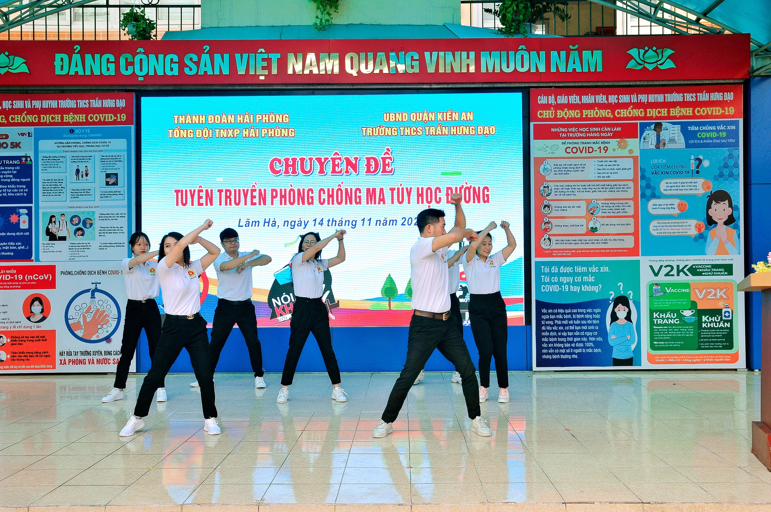 Nhận thức rõ hậu quả tác hại vô cùng nghiêm trọng cho xã hội của hành vi do ma túy gây ra. Thực hiện theo Chỉ thị số 18/CT- UBND ngày 13/7/2018 của Ủy ban nhân dân thành phố Hải Phòng, về việc tiếp tục tăng cường lãnh đạo, chỉ đạo công tác phòng, chống ma túy trên địa bàn thành phố. Trường THCS Trần Hưng Đạo kết hợp với Đội thanh niên xung kích phòng chống ma túy học đường thành phố Hải Phòng tổ chức buổi Tuyên truyền Phòng chống ma tuý học đường. Mục đích của buổi tuyên truyền ngày hôm nay là quán triệt, nâng cao nhận thức của giáo viên, học sinh và các bậc phụ huynh về ý nghĩa, tầm quan trọng của việc phòng chống ma túy học đường. Trang bị cho học sinh một số kỹ năng phòng chống ma túy học đường. Nhân rộng việc tuyên truyền phòng chống ma túy học đường tới các trường trên địa bàn quận và thành phố.